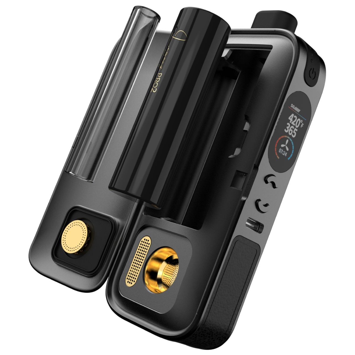 L’AirVape Legacy PRO 2 est le vaporisateur portable le plus avancé de la gamme AirVape, et le choix définitif pour les consommateurs exigeants qui refusent tout compromis. Combinant une technologie de chauffage hybride avec un écran numérique couleur, un contrôle précis de la température de 100 °C à 240 °C, et une chambre plaquée or 24 carats, le PRO 2 établit la référence de ce qu’un vaporisateur portable peut être.