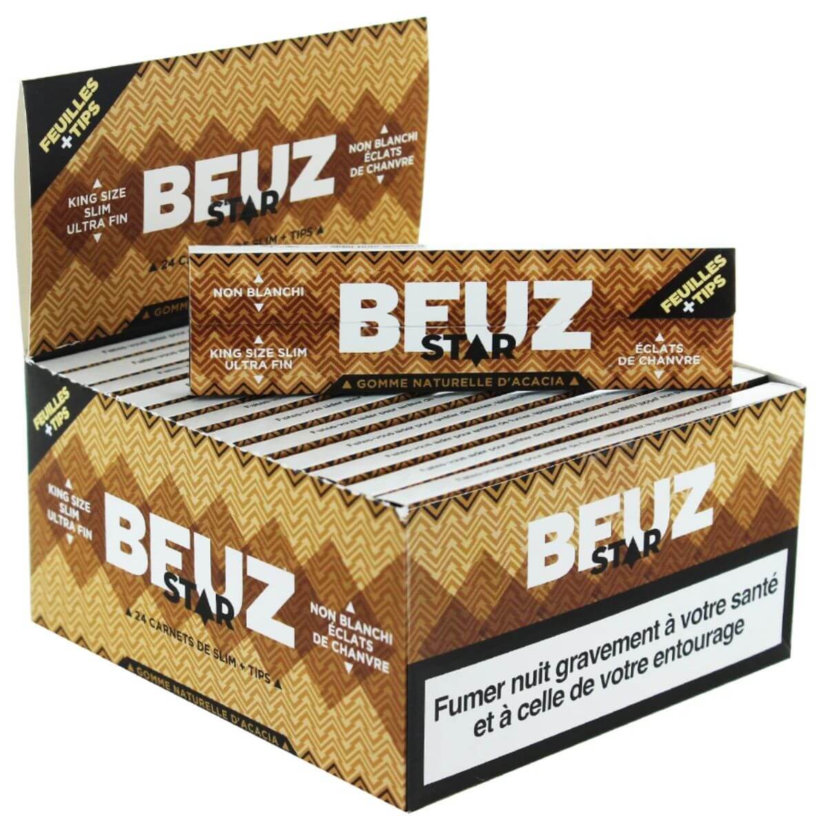 - 24 × paquets de feuilles à rouler ultra fines Beuz Star King Size Slim avec filtres