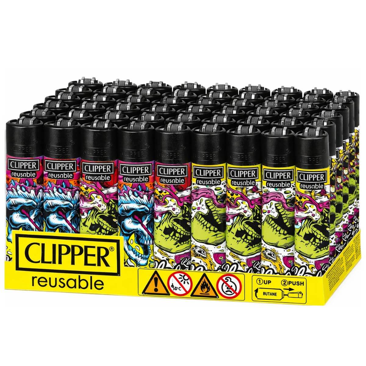 - 48 × Briquets Clipper Monkey King (assortiment de designs Skulls)