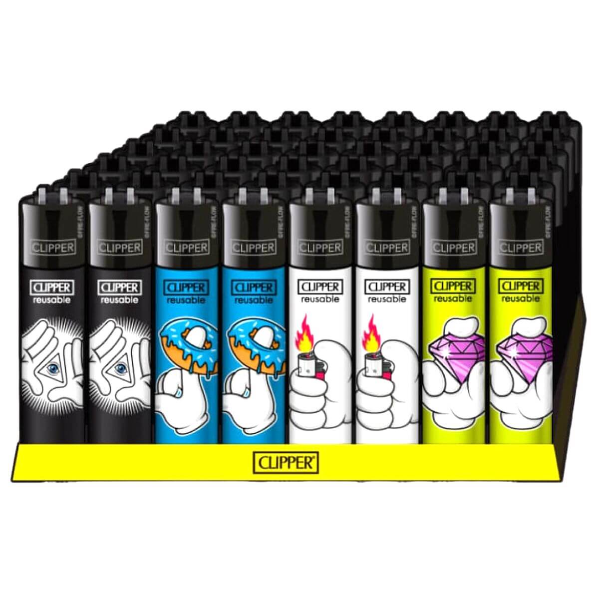 - 48 briquets rechargeables Clipper Classic Cartoon Hands #3 dans un présentoir prêt à la vente