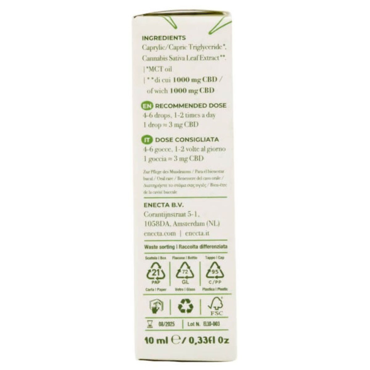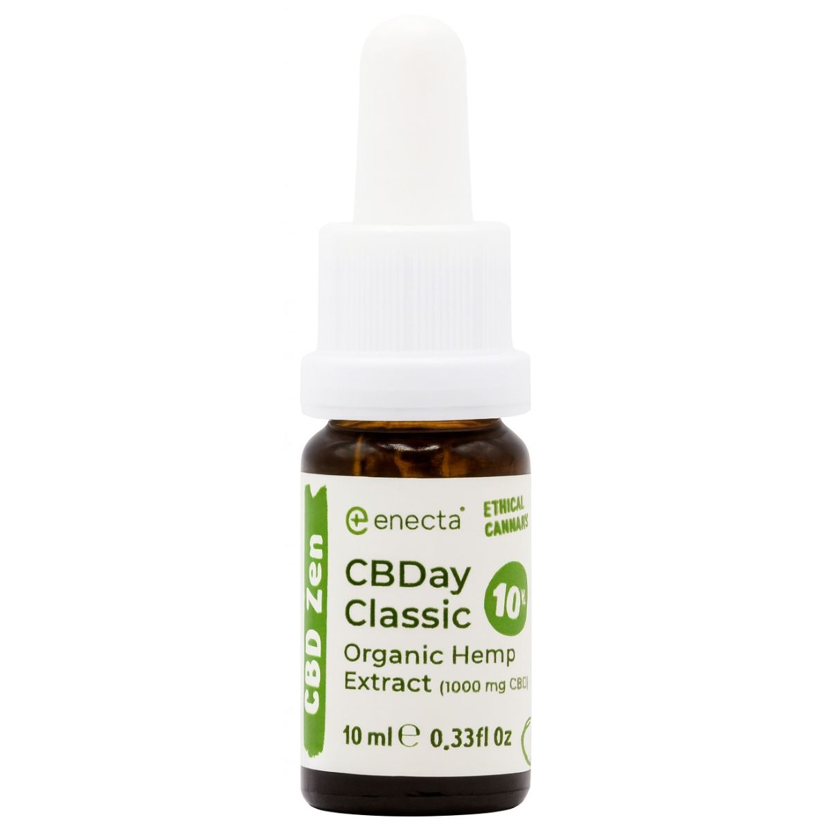 - 1 × flacon compte-gouttes en verre ambré de 10 ml d’huile de CBD Enecta CBDay Classic 10 %