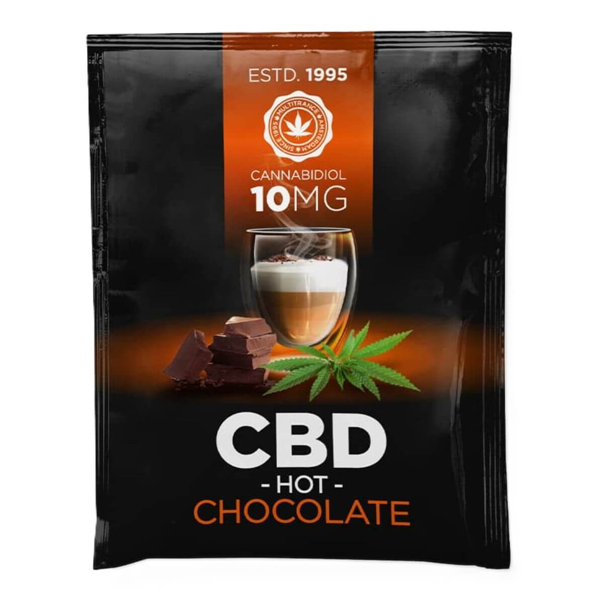 - 10 sachets de chocolat chaud instantané emballés individuellement (10mg CBD chacun).