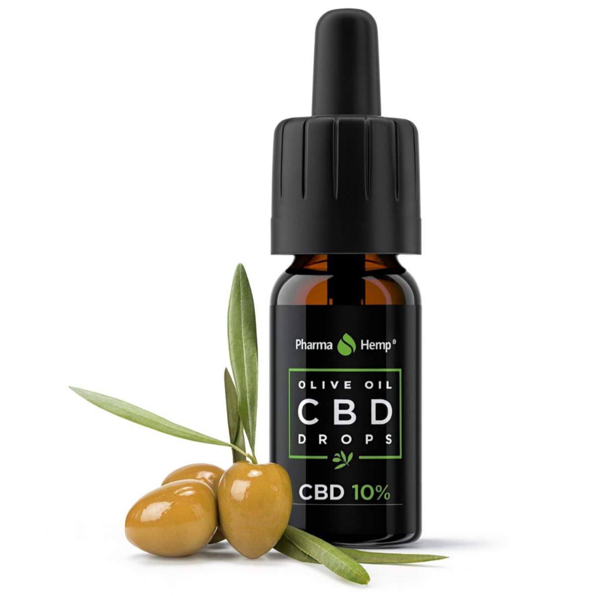- 1 × flacon compte-gouttes en verre ambré de 10 ml (Gouttes de CBD Pharma Hemp à l’huile d’olive 10 %)