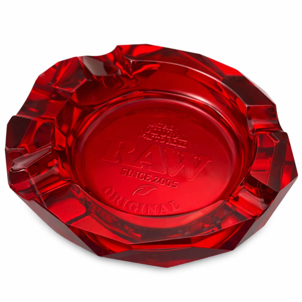 - 1 cendrier en verre épais RAW Ruby emballé dans une boîte cadeau de marque