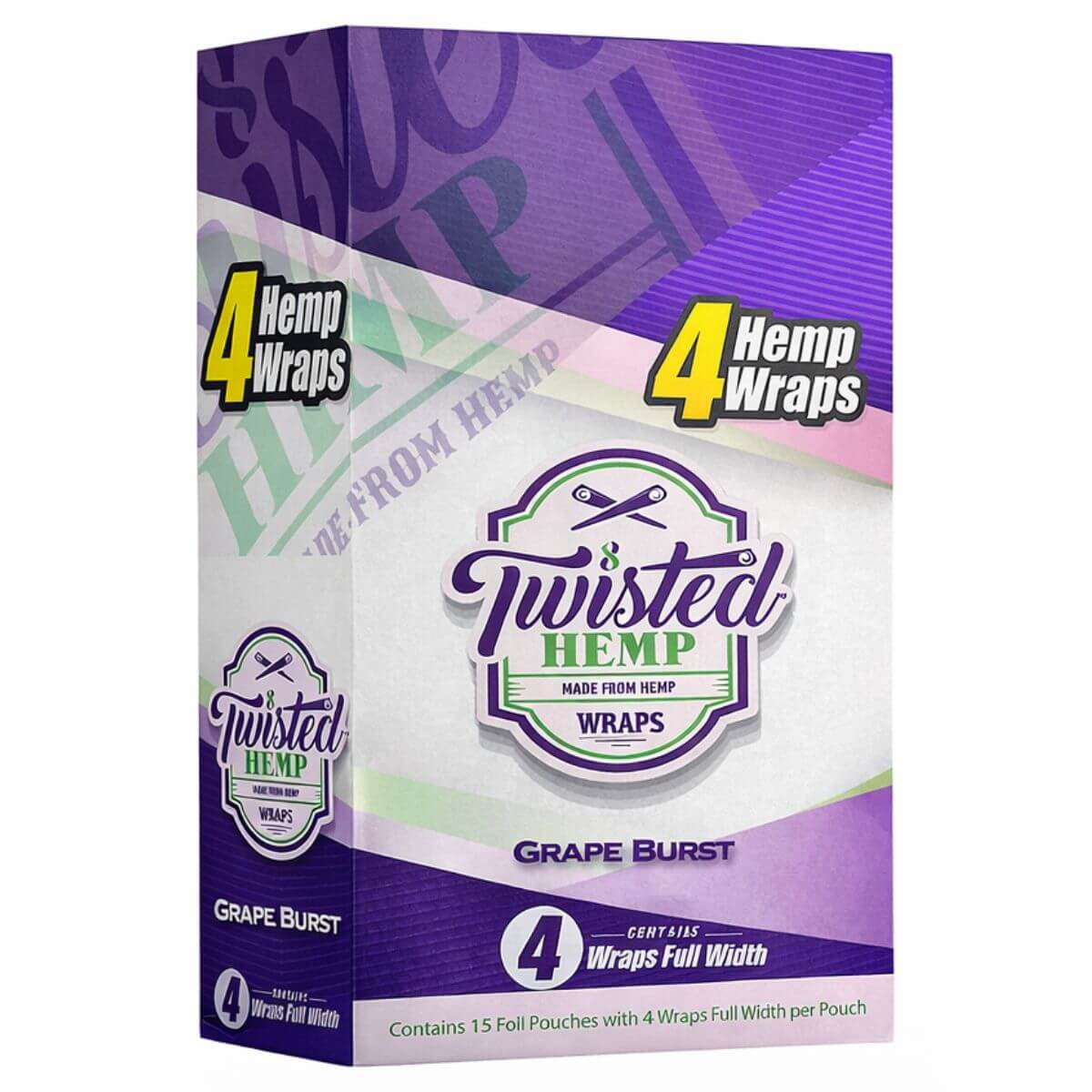 - 1 présentoir de vente au détail contenant 15 feuilles à rouler Twisted Hemp Wraps Grape Burst emballées individuellement